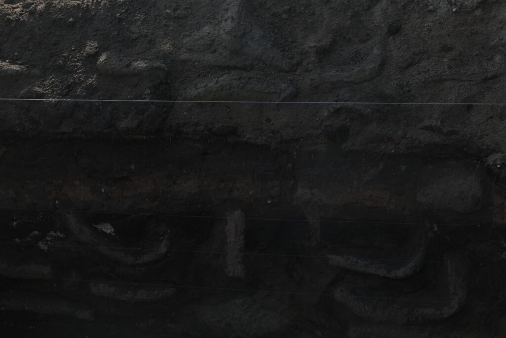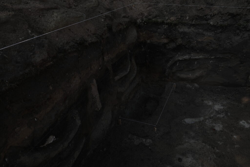 David Graeber and David Wengrow in their book „The Dawn of Everything: A New History of Humanity” write that 25,000-12,000 years ago, impressive architectural works called „Mammoth Houses” existed in the areas overlapping today’s Poland and Ukraine. They were meeting places for nomadic tribes living in areas overlapping with the present-day territories of Poland and Ukraine. Inspired by this history, the artist created a multimedia installation in which fictional and authentic stories about human ancestors intertwine. Ewelina Węgiel thus draws viewers into a paradocumentary story, saying that one of the settlements so far discovered in areas „from Krakow to Kiev” has just been found in Orońsko. Fictional and non-fictional stories of human and non-human ancestors intertwine to address issues of common extinction, regardless of gender, nationality, species.