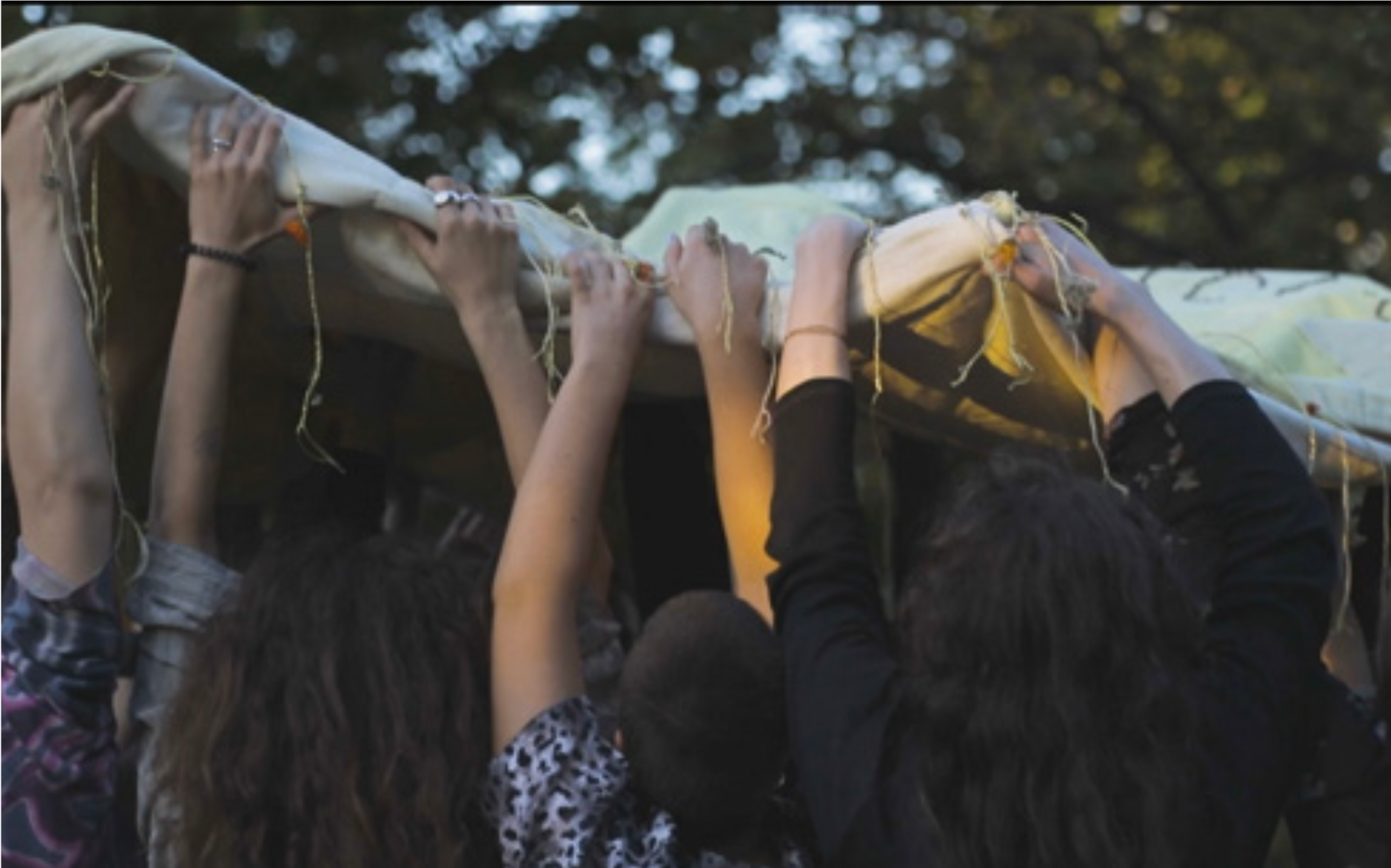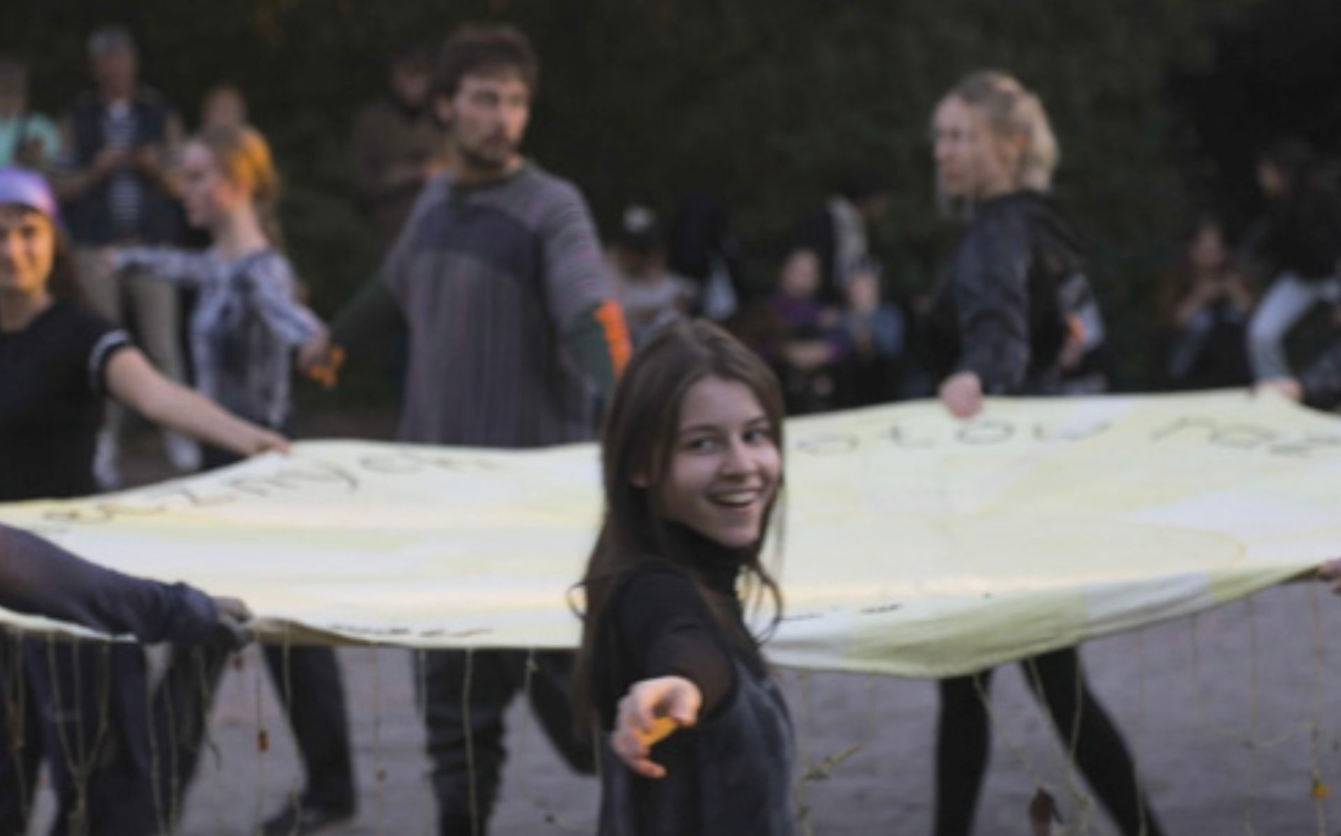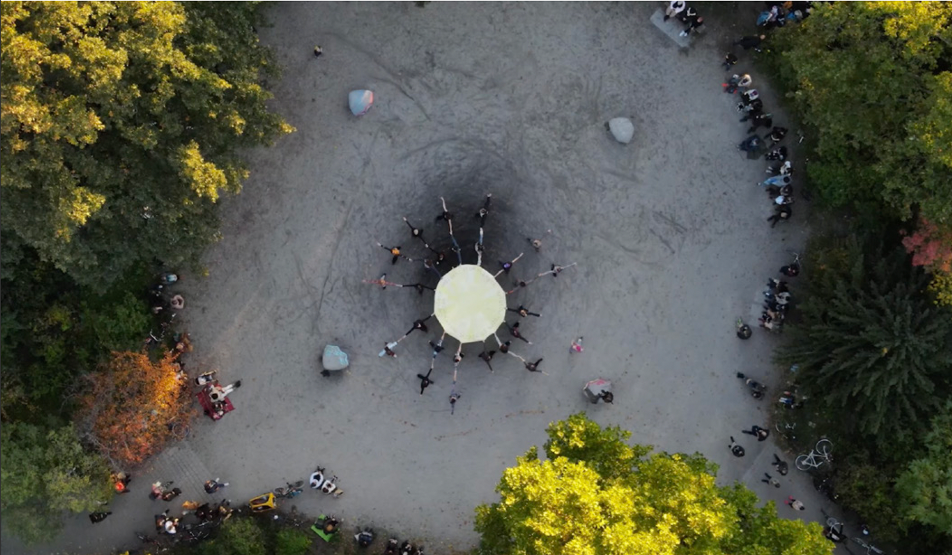 „zaplatanie” is a secular folk rave ritual with a public character. Centered around the metaphor of braiding, it is an invitation to re-imagine meaningful and intimate co-presence with the human and non-human worlds. More than 20 dancers have been paired with live musicians to create a continuous, hypnotic 40-minute work that draws from contemporary dance vocabularies, traditional Eastern European folk songs and dances, communal ceremonies or outdoor pandemic events. The event took place on the Rixdorfer Höhe, a post-war rubble site in Hasenheide Park, and its centerpiece was a large sculpture made of naturally dyed material and sunflower seeds produced especially for the occasion. I am responsible for the direction and for the video. Co-authors: Wojciech Kosma, Monika Blaszczak, Jess Zamora-Turner