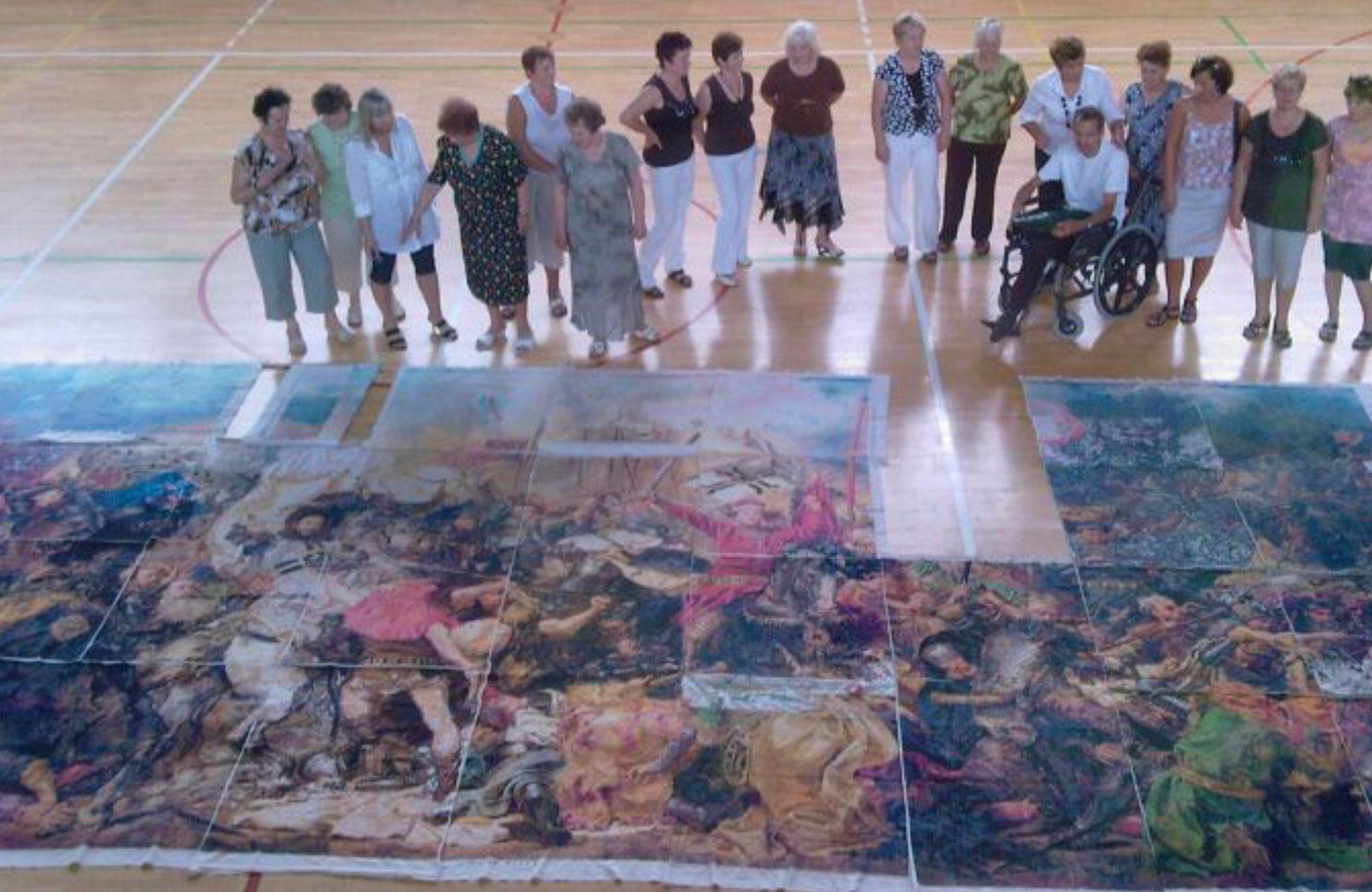 Many people in Poland devoted many years of their lives to create an embroidered full-size (4x10m) painting, a full-size painting copy, or a bas-relief, made from 40 tons of wood.