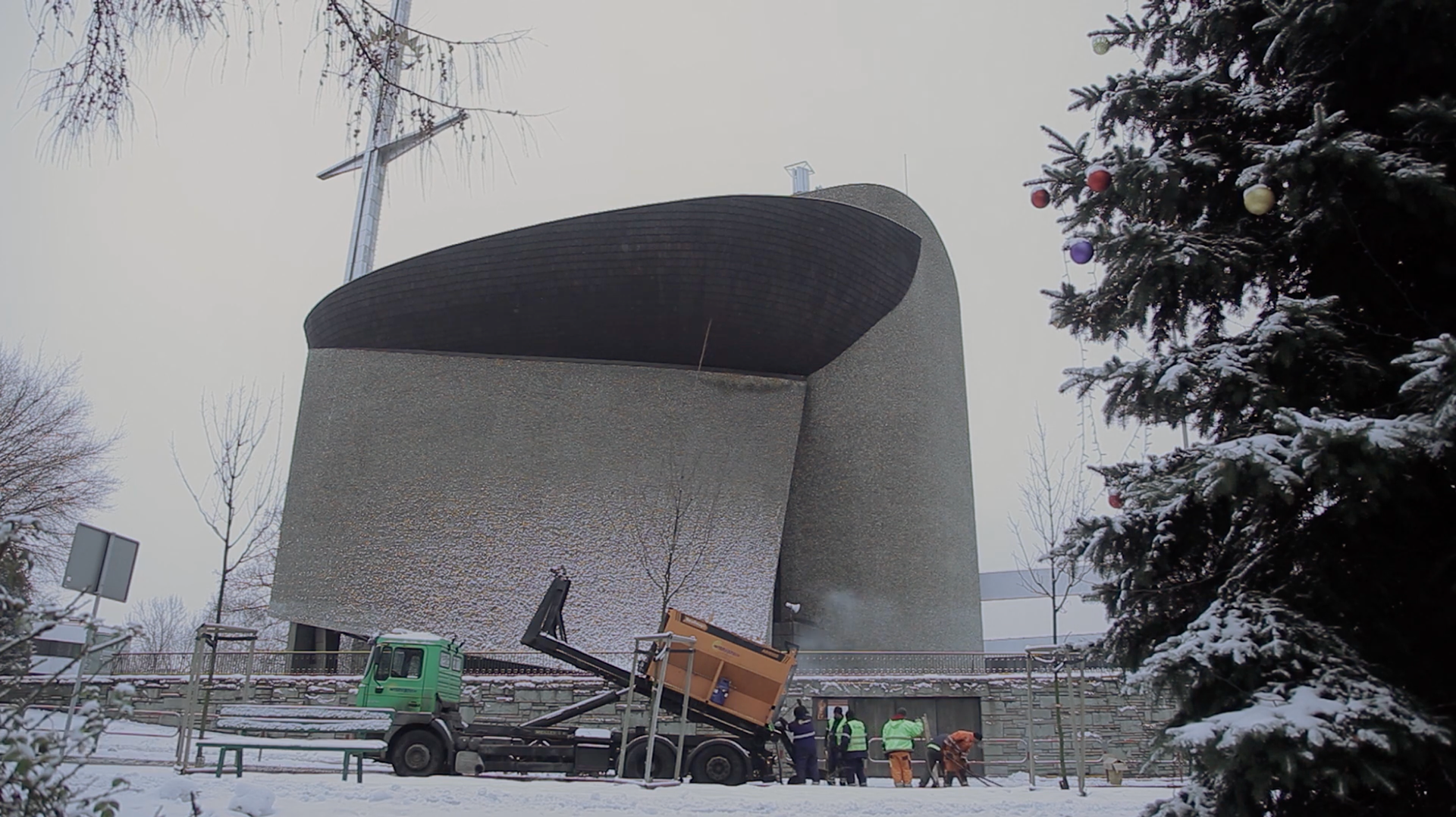 The project serves as a deep exploration of the Christian community formed around the Arka Pana church, its intricate rituals, devoid of any superficial judgments that such groups often face. Simultaneously, it serves as an architectural study. The Ark of the Lord Church stands as one of the most fascinating examples of sacred architecture in Poland, and I portray it as a place that exists within both the celestial and cosmic realms. There is an otherworldly element within, extending beyond the confines of the Catholic religion. Yet, I also depict it as a space where ordinary, everyday activities transpire. The work captures the delicate interplay between the sacred, heavenly, and cosmic spheres and the mundane, down-to-earth realm. Thus, this film appears deceptively simple but offers a multifaceted perspective.